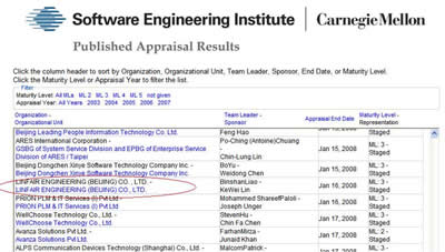 諮詢顧問廖彬山先生向公司副總經理林克偉先生頒發證書 本次評估由中鼎諮詢有限公司依據過程改進CMMI評估方法的A級標準執行。評估以美國軟體工程研究院、卡內基·梅隆大學制定的產品、工程開發成熟度3級模型為基準, 內容覆蓋集成過程、產品開發、系統工程和軟體發展幾大領域。 2005年以來,福茂展業科技有限公司對其所屬軟體發展部門大力投入,集中精力對軟體發展和管理過程進行改進。中鼎諮詢公司的主任評估師廖彬山先生評價此次評估結果時說“福茂北京公司成功證明了自己在軟體和產品開發領域所具有的高等級成熟度,其研發中心的工作覆蓋了CMMI成熟度3級模型要求的所有過程域,有些過程域已有超出3級實踐的表現。”